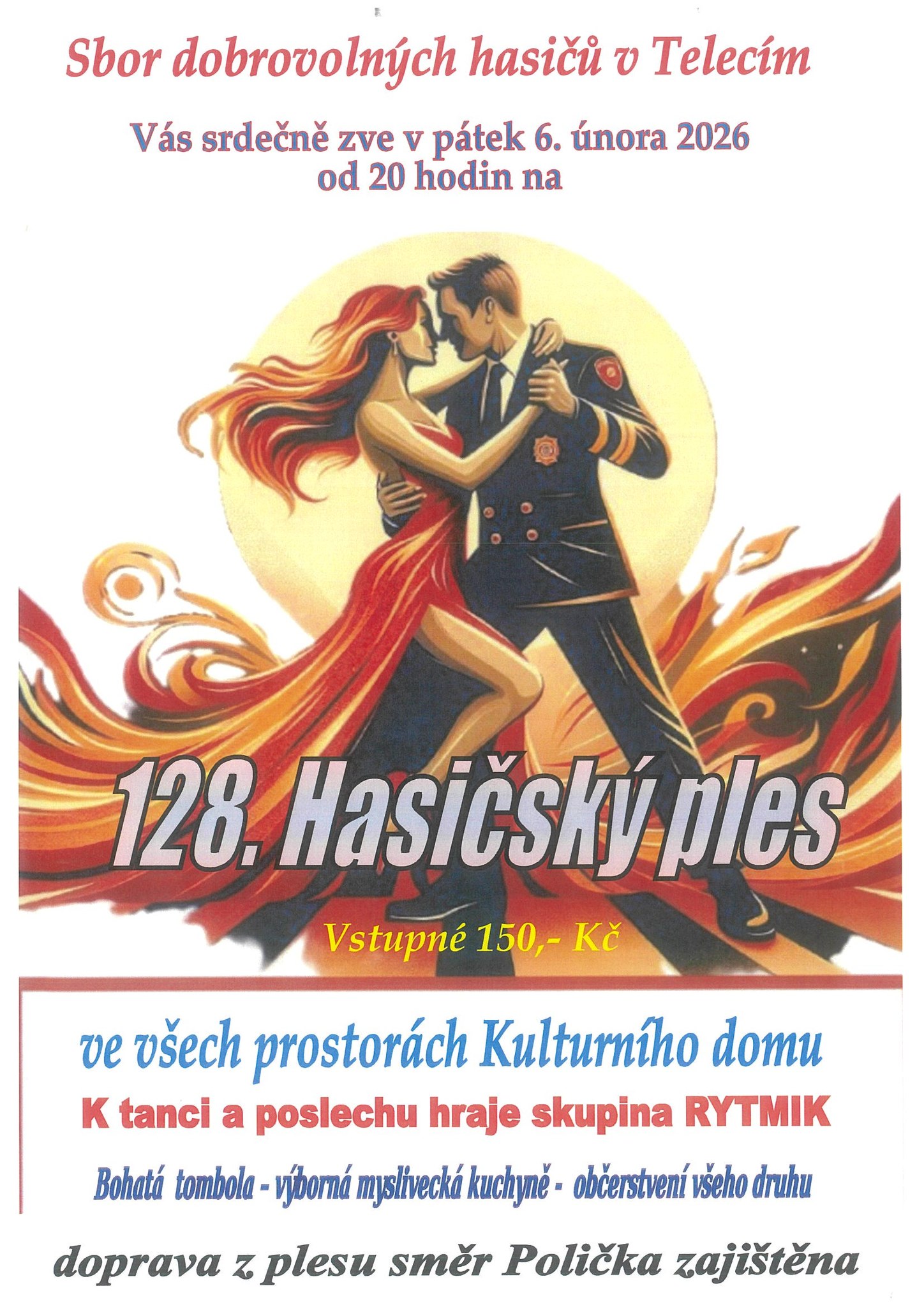 Sbor dobrovolných hasičů v Telecím Vás srdečně zve v pátek 6. února 2026 od 20 hodin na 128. Hasičský ples.